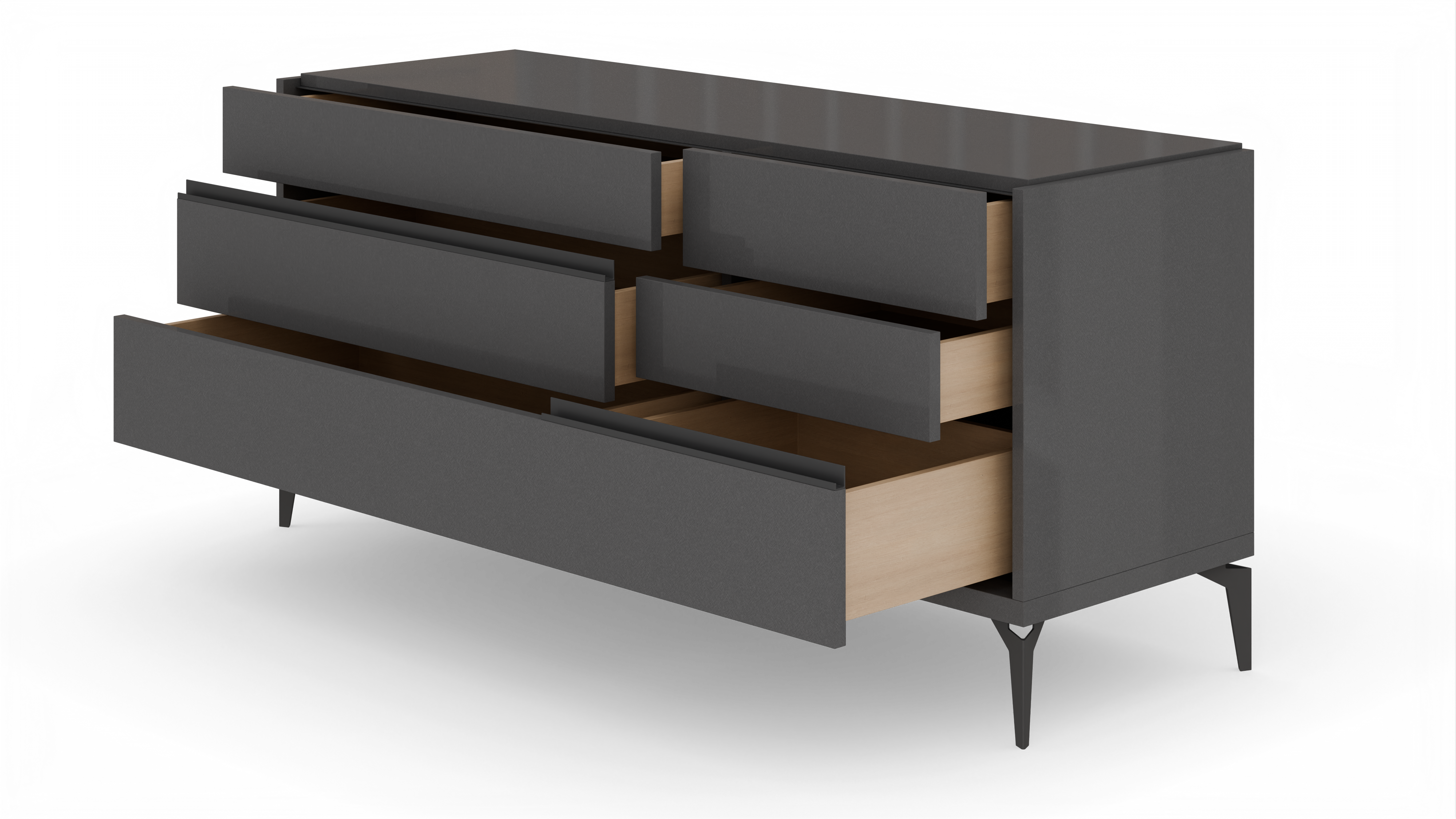 - Five drawers in different sizes